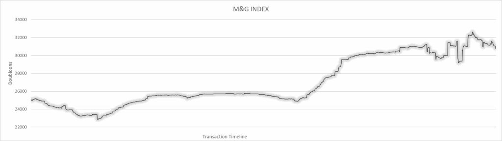 M&G Index started at $25,202.89 and ended at $30,790.30. This is up 22.17% in 2025. The turmoil in the final month and half of the year is due to a change in mining mechanics that caused players to attempt price corrections to several items.