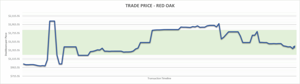 Red Oak price is $1,428.57 . This is finished the year at +42.86%.