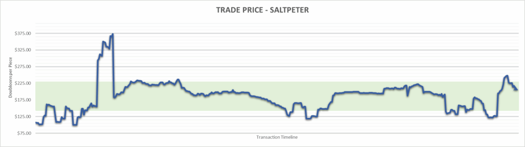 Saltpeter price is $204.33 . This is finished the year at +90.47%.