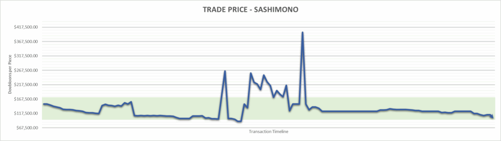 Sashimono price is $100,000.00 . This is finished the year at -33.33%.