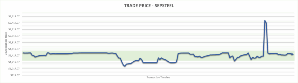 Sepsteel price is $1,446.88 . This is finished the year at -3.54%.