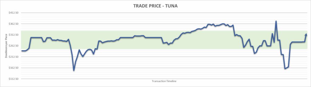 Tuna price is $320.00 . This is finished the year at +33.33%.