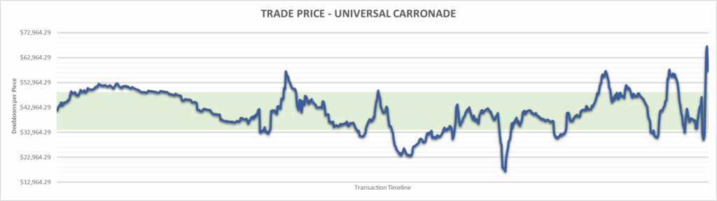 Universal Carronade price is $57,000.00 . This is finished the year at +36.71%.