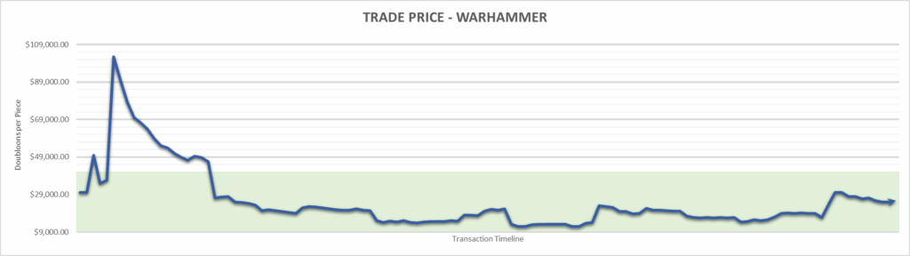 Warhammer price is $25,714.29 . This is finished the year at -14.29%.