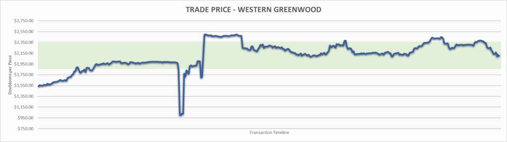 Western Greenwood price is $2,099.41 . This is finished the year at +36.61%.