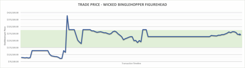 Wicked Binglehopper Figurehead price is $262,500.00 . This is finished the year at +159.9%.