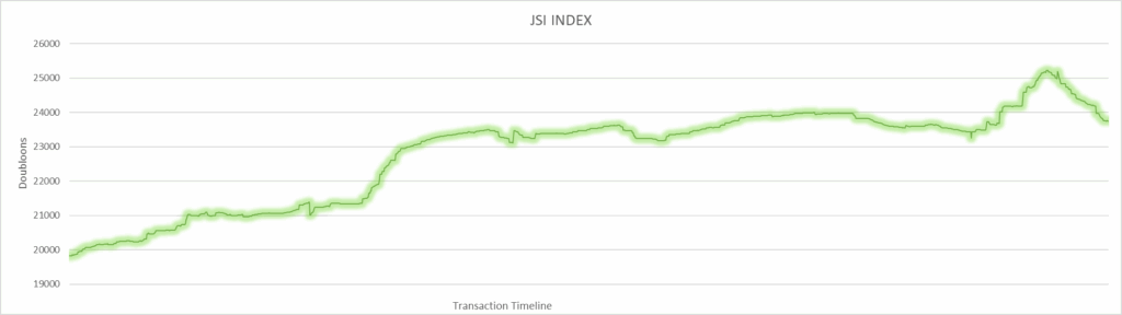 JSI Index started at $19,815.88 and ended at $23,752.57. This is up 19.87% in 2025. This index remained fairly consistent and the recommended profession for new players due to it turning a steady profit.
