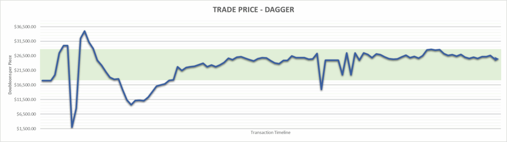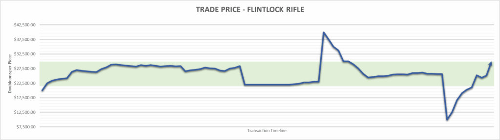 Flintlock Pistol price is $25,000.00 . This is finished the year at +56.25%.