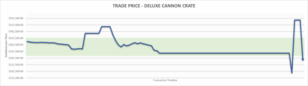 Deluxe Cannon Crate price is $240,000.00 . This is finished the year at -38.16%.