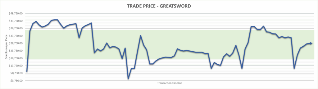 Greatsword price is $28,857.14 . This is finished the year at +188.57%.