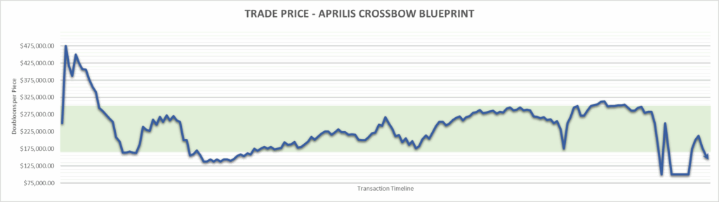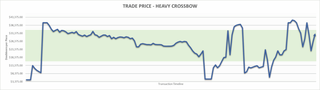 Heavy Crossbow price is $33,333.33 . This is finished the year at +640.74%.