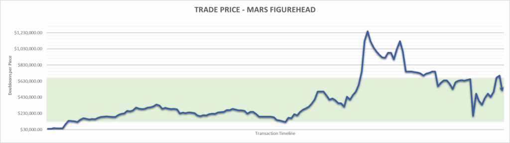 Mars Figurehead price is $500,000.00 . This is finished the year at +1150.00%.