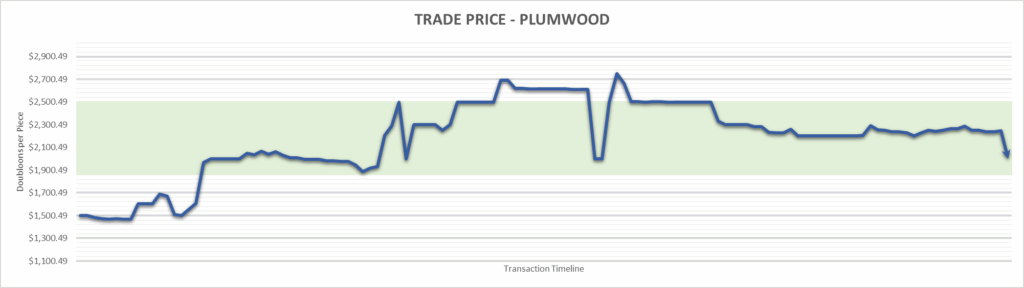 Plumwood price is $2,000.00 . This is finished the year at +33.33%.
