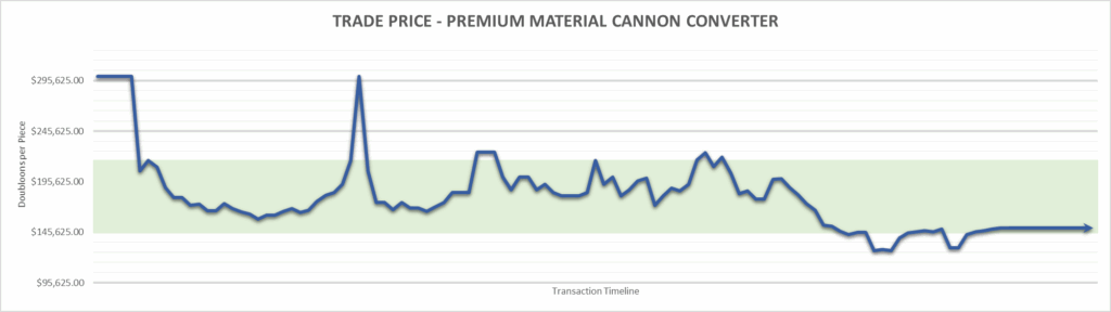 Premium Material Cannon Converter price is $150,000.00 . This is finished the year at -50%.